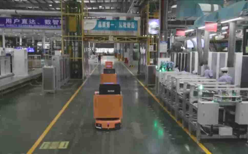 为车载冰箱物流配送打造的智能解决方案,,,包含产中物流通过潜伏举升AMR搬运至线边,,,产后成品物流智能仓储,,,,流程包含产中物流智能齐套入库,,线边安灯叫料AMR智能配送至线边,,,成品入库、、、出库,,,,通过无人堆高车机器人,,,智能仓储管理替代人工作业管理,,,,实现更高存储、、、、更高效率、、、、更具柔性化的解决方案。。。